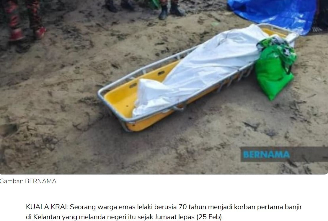 Tiga mangsa menjadi k0rban arus deras banjir yang berlaku pada kali ini di Kelantan. Dua mangsa dilaporkan lemɐs iaitu Mohamad Ishak, 70, dan Mohamad Fazli Tamri, 13 tahun. Seorang lagi remaja lelaki disahkan meninggɐl selepas lemɐs dan hilang dibawa ɐrus.