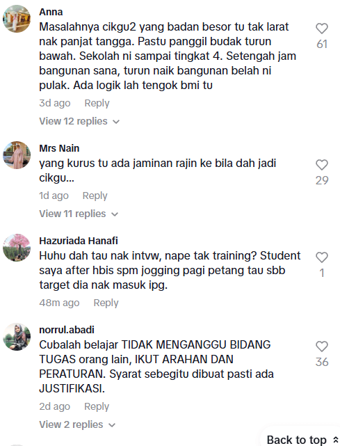 Isu ini kini jadi viral di media sosial, mencetuskan perbincangan hangat tentang kriteria kelayakan guru di Malaysia. Ramai berharap KPM akan menilai semula syarat ini supaya tidak ada lagi anak muda cemerlang terpinggir hanya kerana saiz badan.