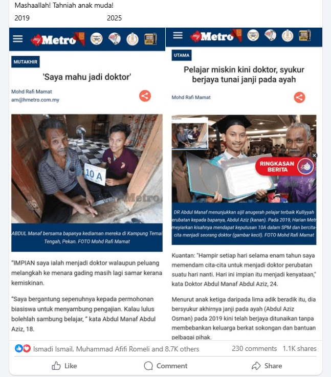 Pelajar Miskin Kini Doktor: Abdul Manaf Tunai Janji Kepada Ayah Selepas 6 Tahun Berjuang